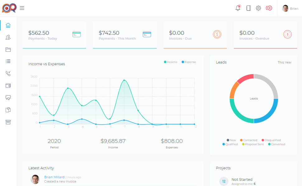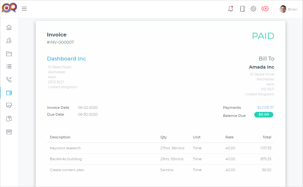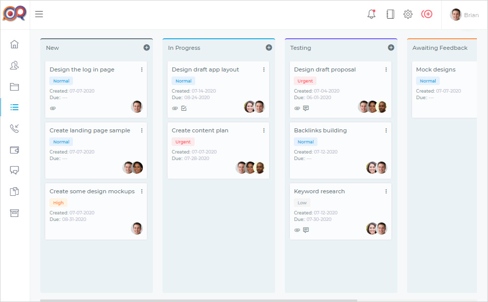 Our CRM gives you the right tools to manage, collaborate and complete your projects on time. Your clients will be happy and your team will be happy.- Easily see the progress of your project
