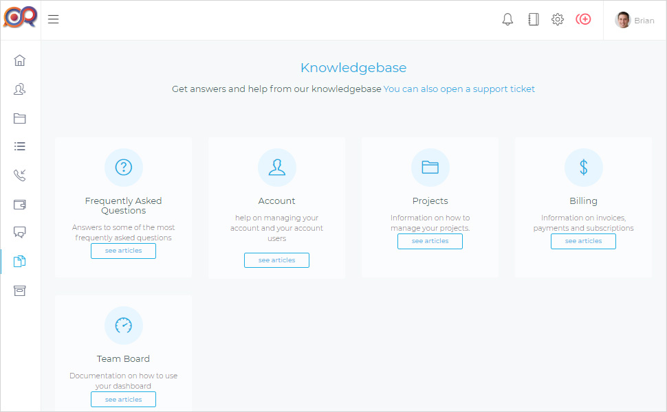Use the helpdesk to provide support for your clients